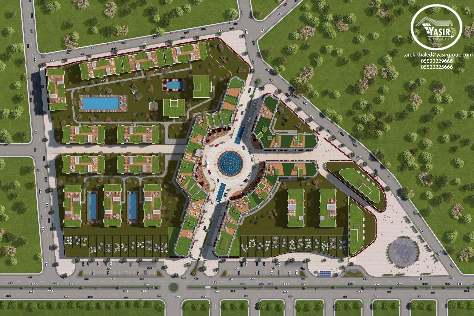 و يمتد على مساحة ٦٩٠٠٠ متر مربع يتوضع عليها ٢٧ برج على ارتفاع ٧ طوابق فقط