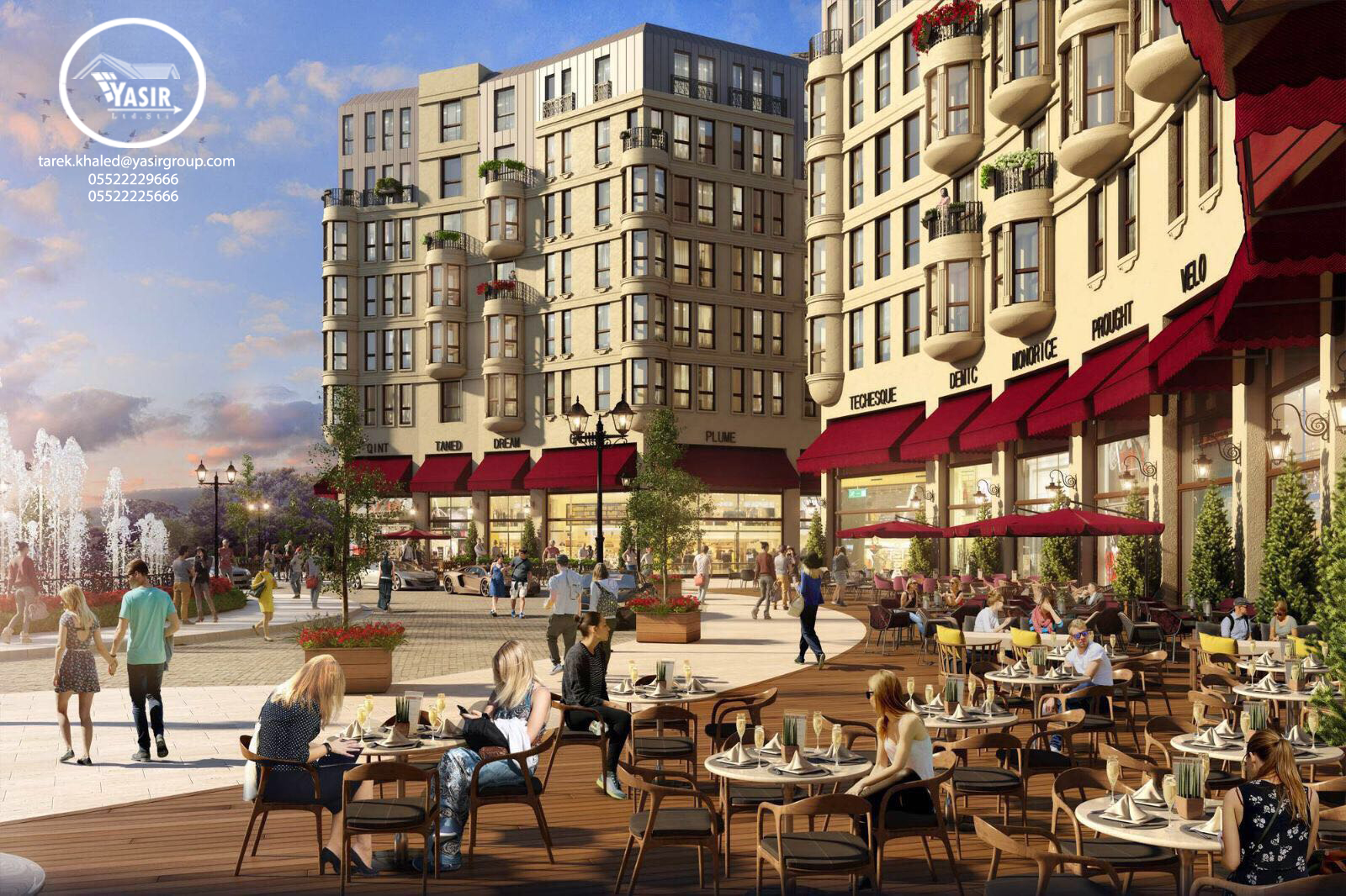 كما يتوسط المشروع ميدان يحتوي على كافة المطاعم الشهيرة العالمية و المحلية