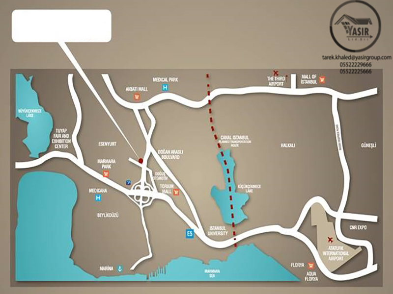 مشروع مثالي لمن لا حدود له يقع في إسنيورت، على الطريق الواصل بين E-5 & TEM (الطرق الرئيسية في اسطنبول) وعلى منطقة استثمارية في اسطنبول.