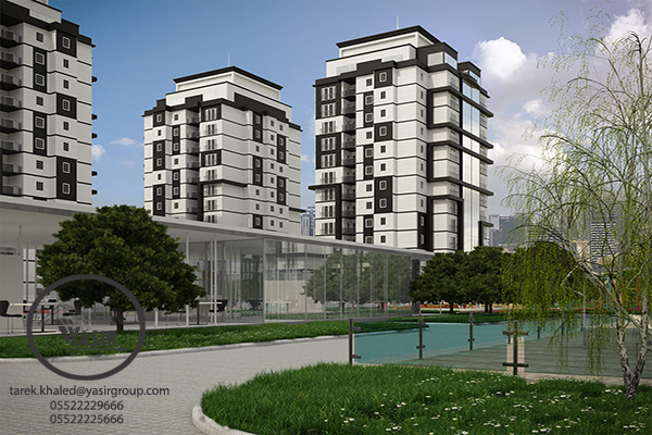 يتكون المشروع من 15 برج سكني فاخر كل برج 13 طابق بعدد إجمالي للشقق 910 شقة على أرض مساحتها 25000m2
